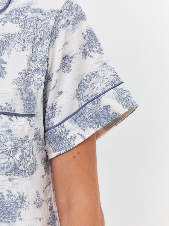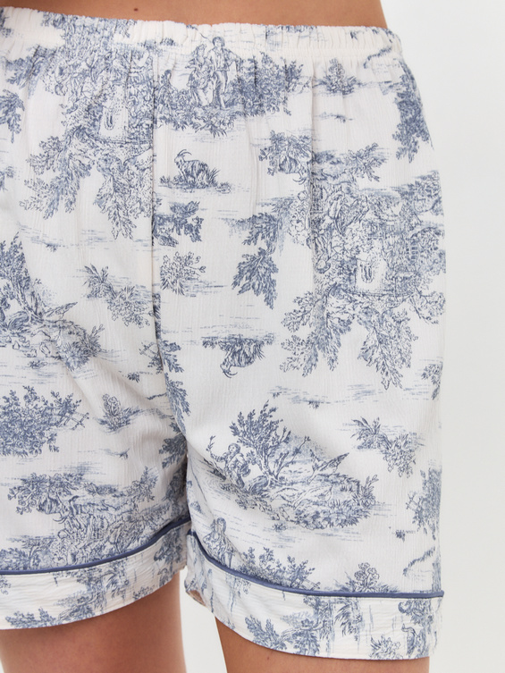 Красивая женская пижама с шортами выполнена из шелковистой,струящейся вискозы и украшена модным травяным принтом.Ткань легкая и невероятно приятная к телу,позволит коже дышать в летний день.Короткий рукав подчеркивает красоту рук.Изящный воротник придает образу нежность и романтичность.Пижама украшена маленьким аккуратным кармашком.Супермягкая резинка на шортах совершенно незаметна.Гипоаллергенный материал сохраняет форму и цвет после стирок.Швы очень аккуратные и деликатные.Пижамка создает уютный летний образ,позволяет оставаться стильной,занимаясь домашними делами или просто расслабиться и отдохнуть.